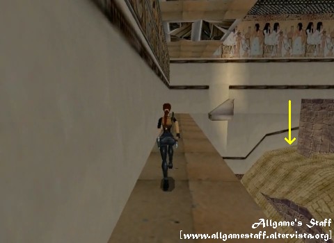 Spostate il blocco di pietra nel punto della mattonella grigia. A questo scopo, tiratelo una volta, quindi spingetelo dall’altro lato. Sentirete aprirsi una porta di pietra. Lasciate questa stanza ed entrate in quella vicina. Siete nella bellissima stanza degli affreschi egizi con una bella musica di sottofondo che vi accompagnerà per tutta questa sezione. Raccogliete il Medikit piccolo nell’angolo in fondo a sinistra, poi salite sui gradini di pietra e, servendovi della scaletta sulla parete, entrate nel passaggio che vi condurrà ad un blocco grigio. Spingetelo in modo da liberare l’apertura del soffitto, quindi salite nel passaggio e seguite il percorso per ritrovarvi nella stanza principale. Noterete che l’uscita della stanza è bloccata da un’alta colonna.